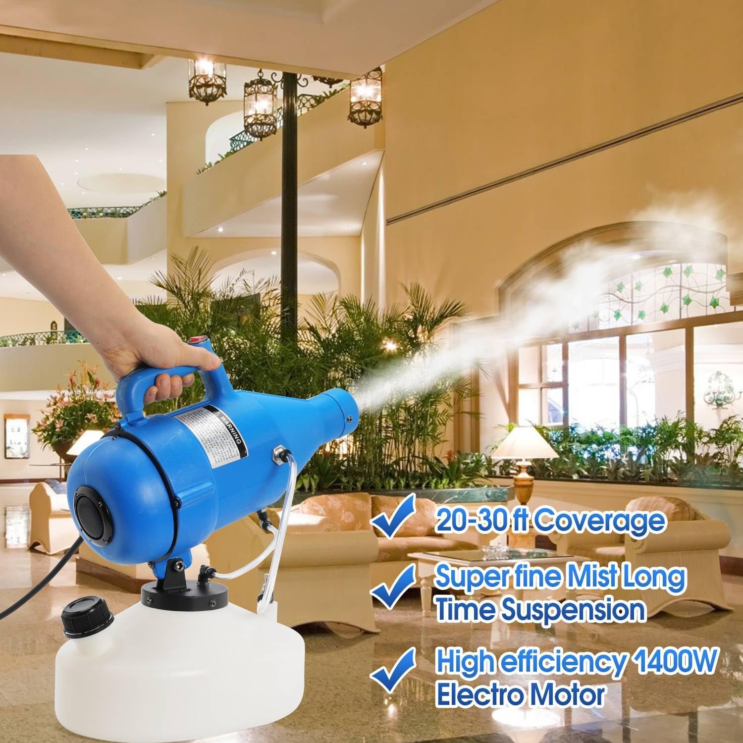 جهاز تبخير ضباب متناهي الصغر يو ال في لرش المبيدات الحشريه يو ال في، جهاز رذاذ بارد مع مسافة رش 30 قدم للمنزل للفنادق والمساجد والمدرسة والحديقة (4.5 لتر، 1.2 جالون)