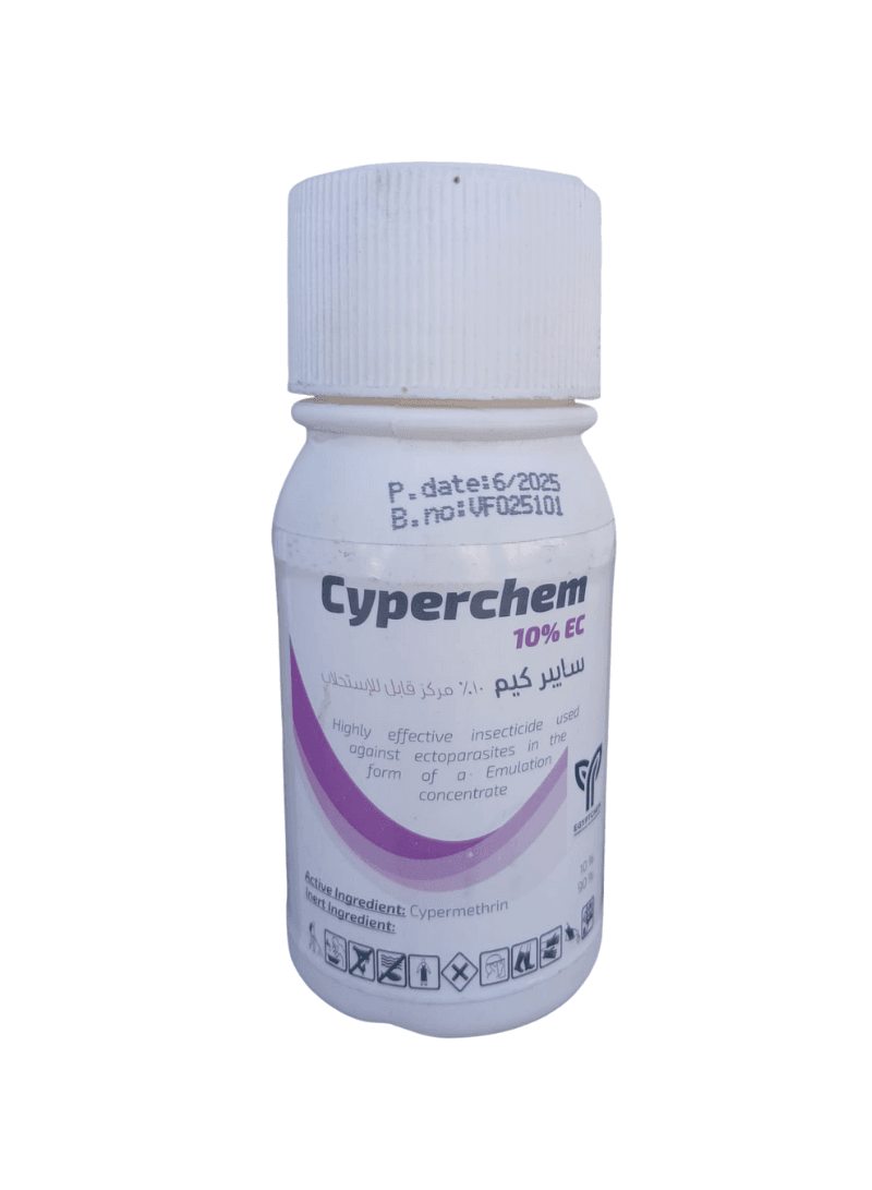 سايبرمثرين 10 كيم 10% EC : سايبرمثرين 10 هو مبيد حشري سائل مركز قابل للاستحلاب، مخصص حصرياً للاستخدام البيطري لمكافحة الطفيليات الخارجية التي تصيب الحيوانات والطيور.